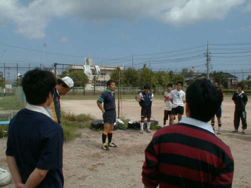 後輩たちに指導する正田君