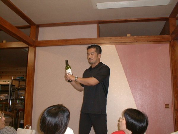 ワインテイスティング。まずは、ワインの説明をしてくれる正田君。