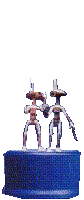 片腕もしくは、両腕を上げた細身キャラ達である。「C-3PO」「ジャージャー」の2体は特徴がハッキリしているが、「トルーパー」「ボバ」「ジャンゴ」の3体は体型がほとんど同じというなんとも厄介なラインナップである。大まかな形状が把握出来たら、全神経を指先に集中させ、頭部形状・腕の角度のビミョ〜な違いをで感じとるべし。 |